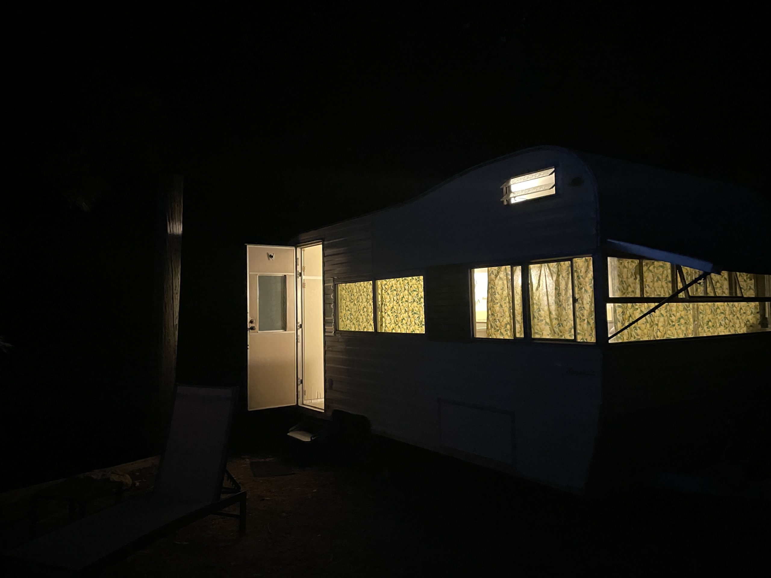 It includes an artistically designed 572 square foot, two level “hippie house” grandfathered as an agricultural building plus a freestanding bathhouse with on-demand water heater, filter and tub overlooking the forest. There’s a well and 10,000 gallon concrete tank (with a new liner); septic, 200 amp electrical and fast 5G internet. A nicely restored 1964 Kenskill travel trailer is parked near the fish pond and wine cellar.